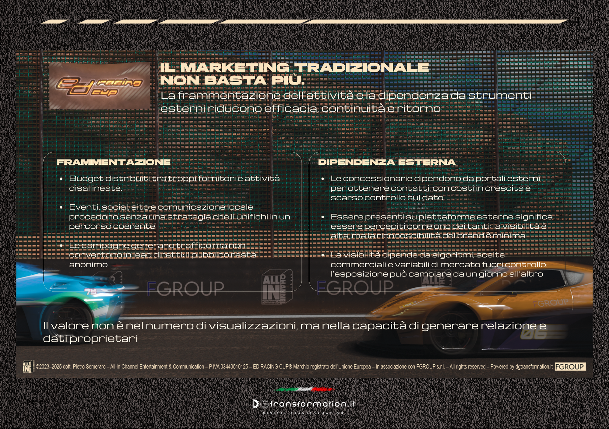ED Racing Cup® non aggiunge un’altra attività al marketing della concessionaria: lo riorganizza.